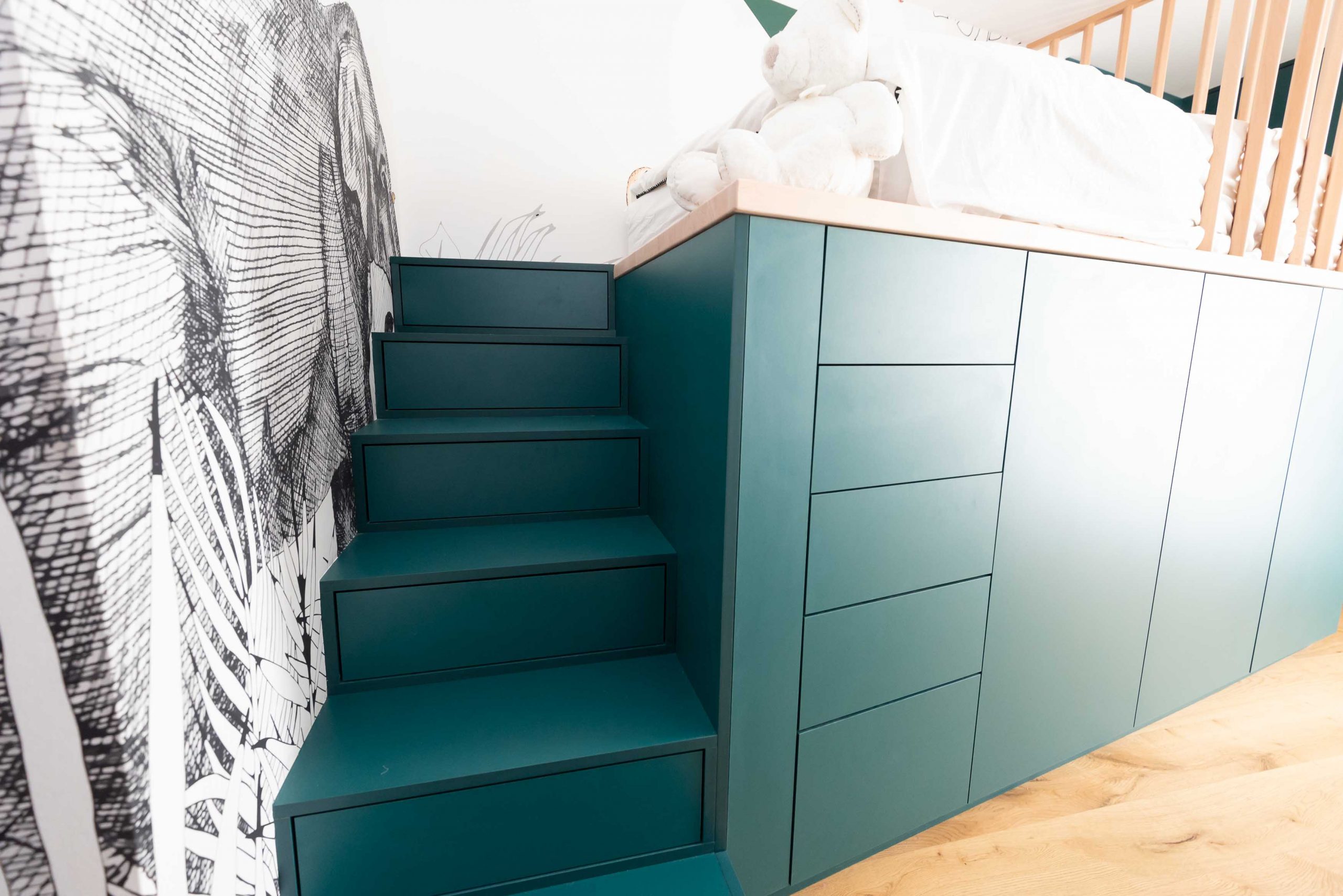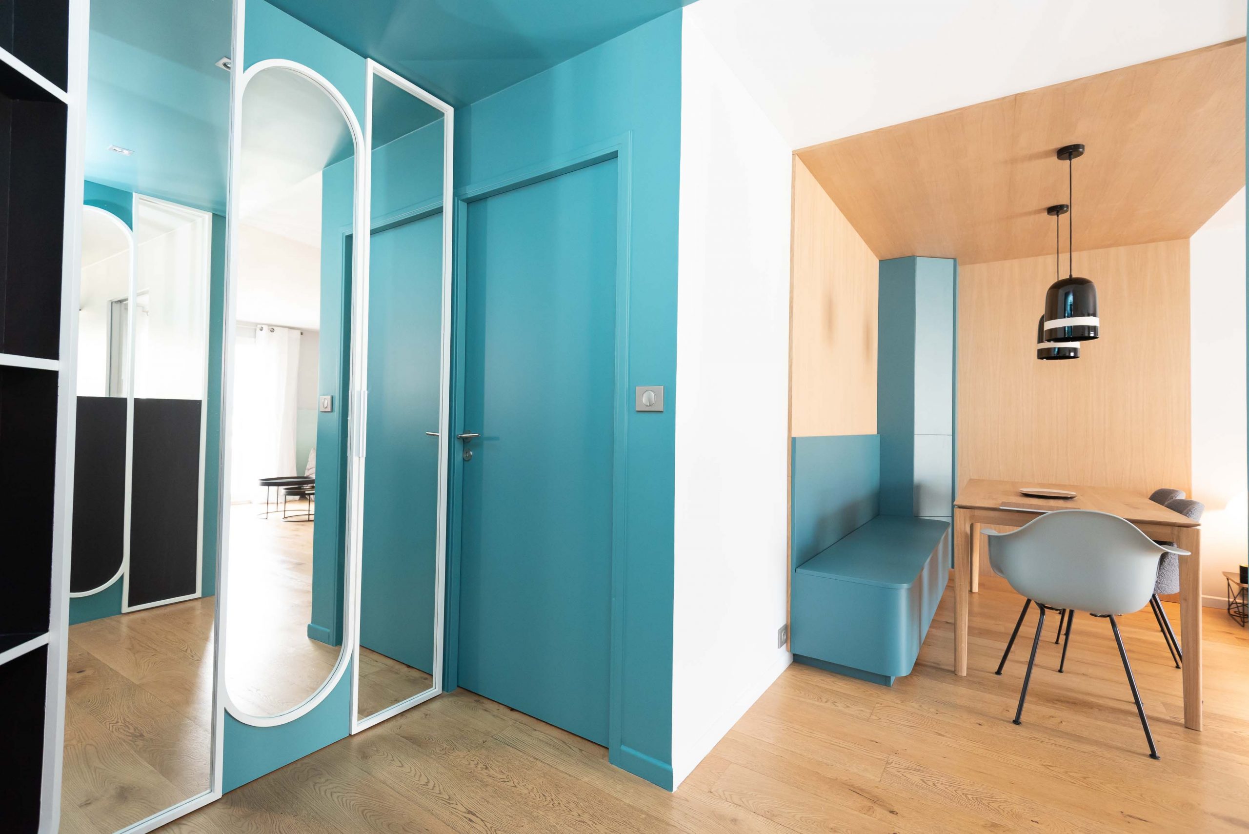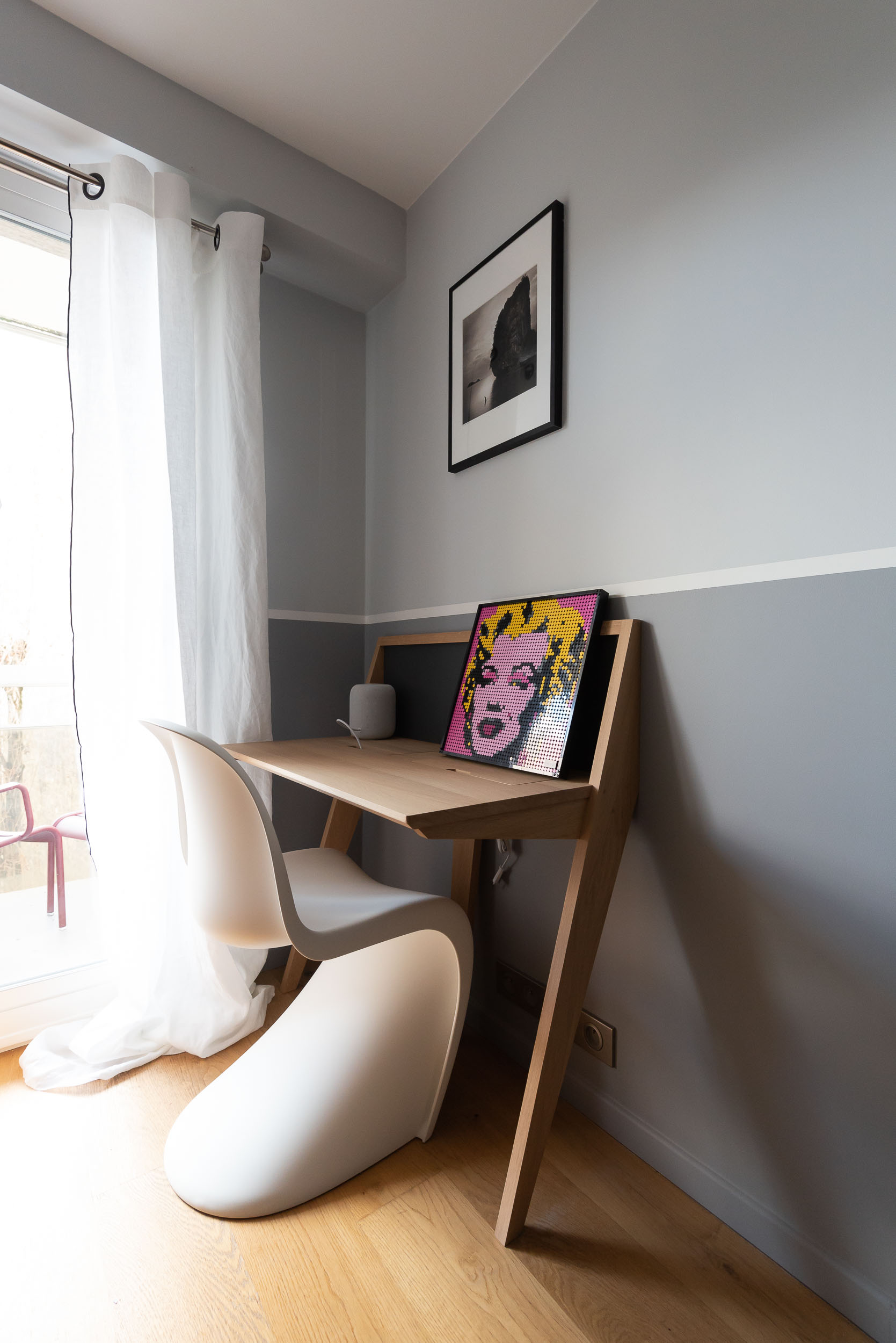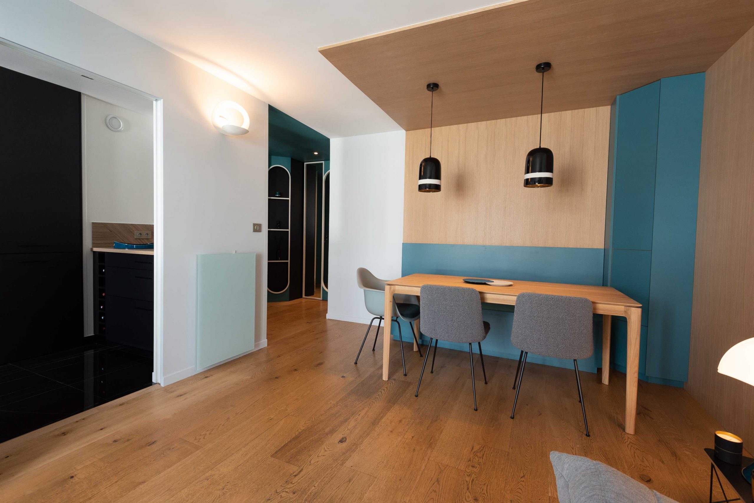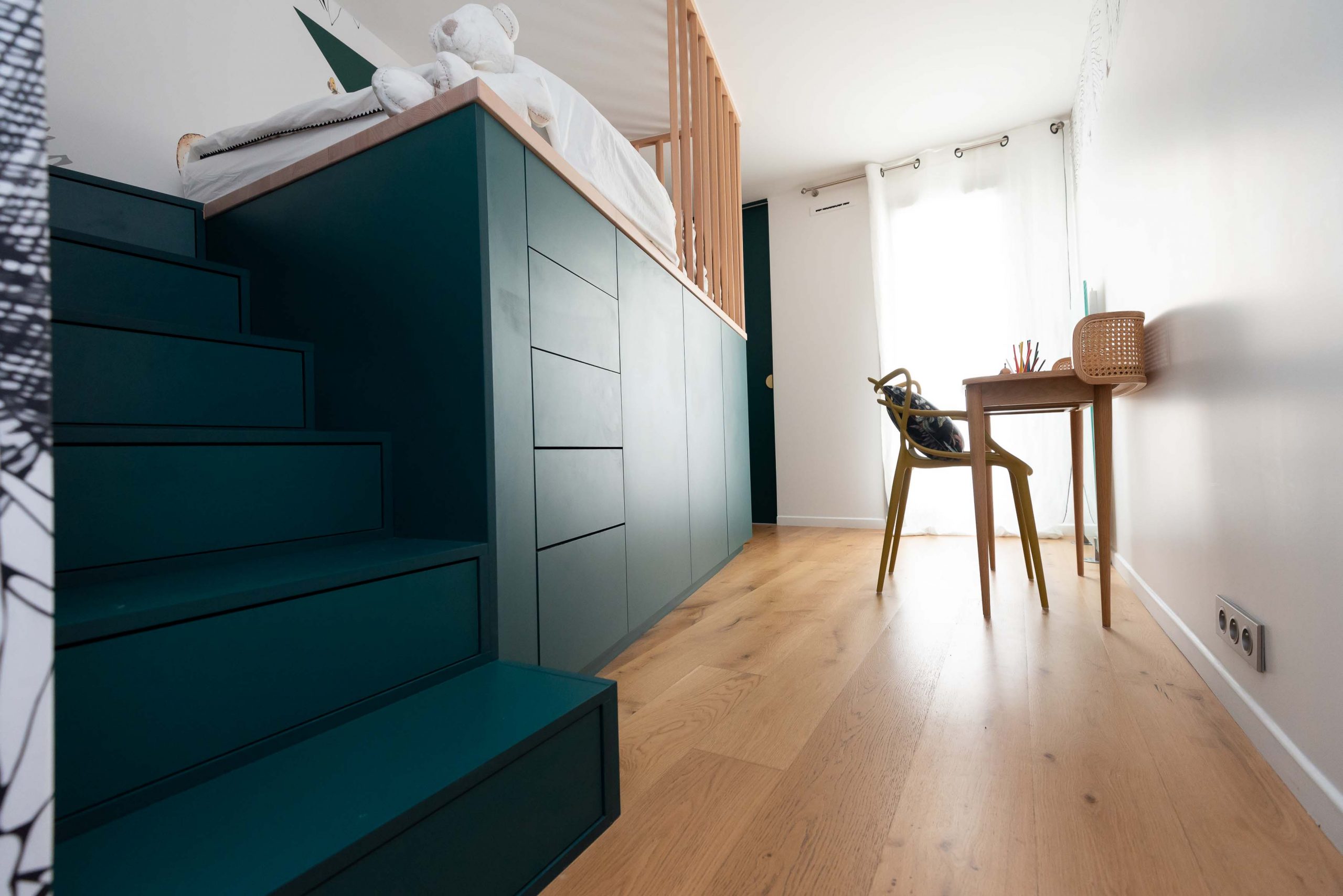 Mobilier sur mesure, recherche de la colorimétrie adaptée aux espaces et aux personnalités, les choix des éléments de décoration appropriés se sont révélé un vrai plaisir et ce projet s’est déroulé en harmonie de la phase études à la livraison du chantier.
